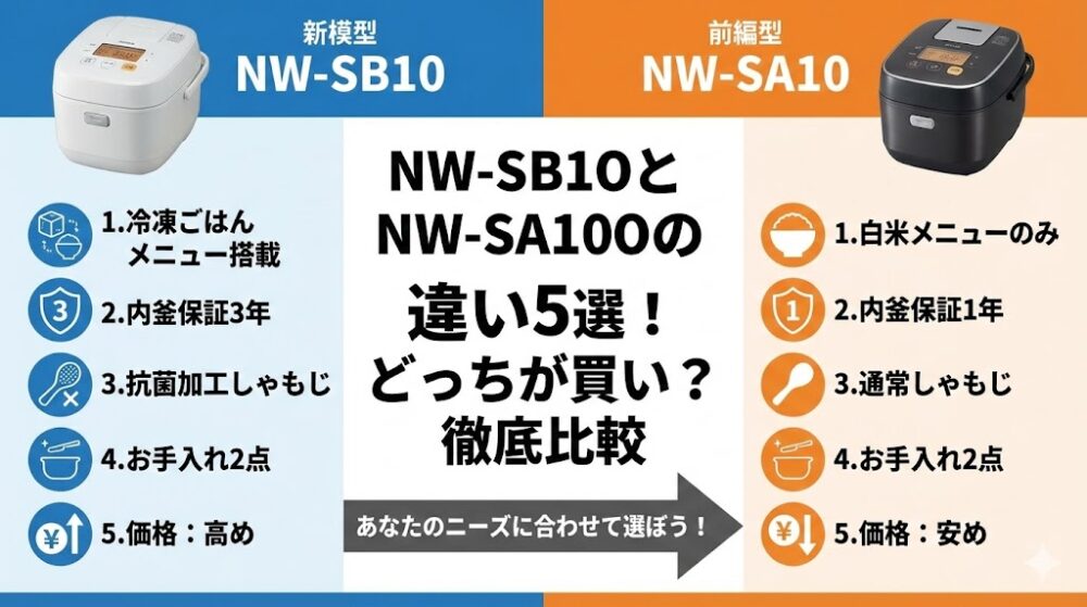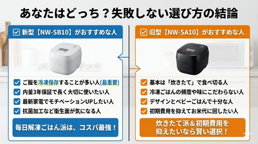 - 選び方:まとめ炊き派は「新型」、炊きたて派&コスパ重視は「旧型」。