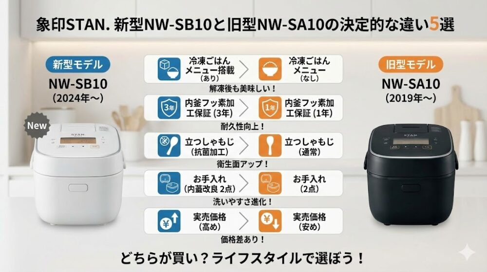 象印STAN. 新型NW-SB10と旧型NW-SA10の決定的な違い5選